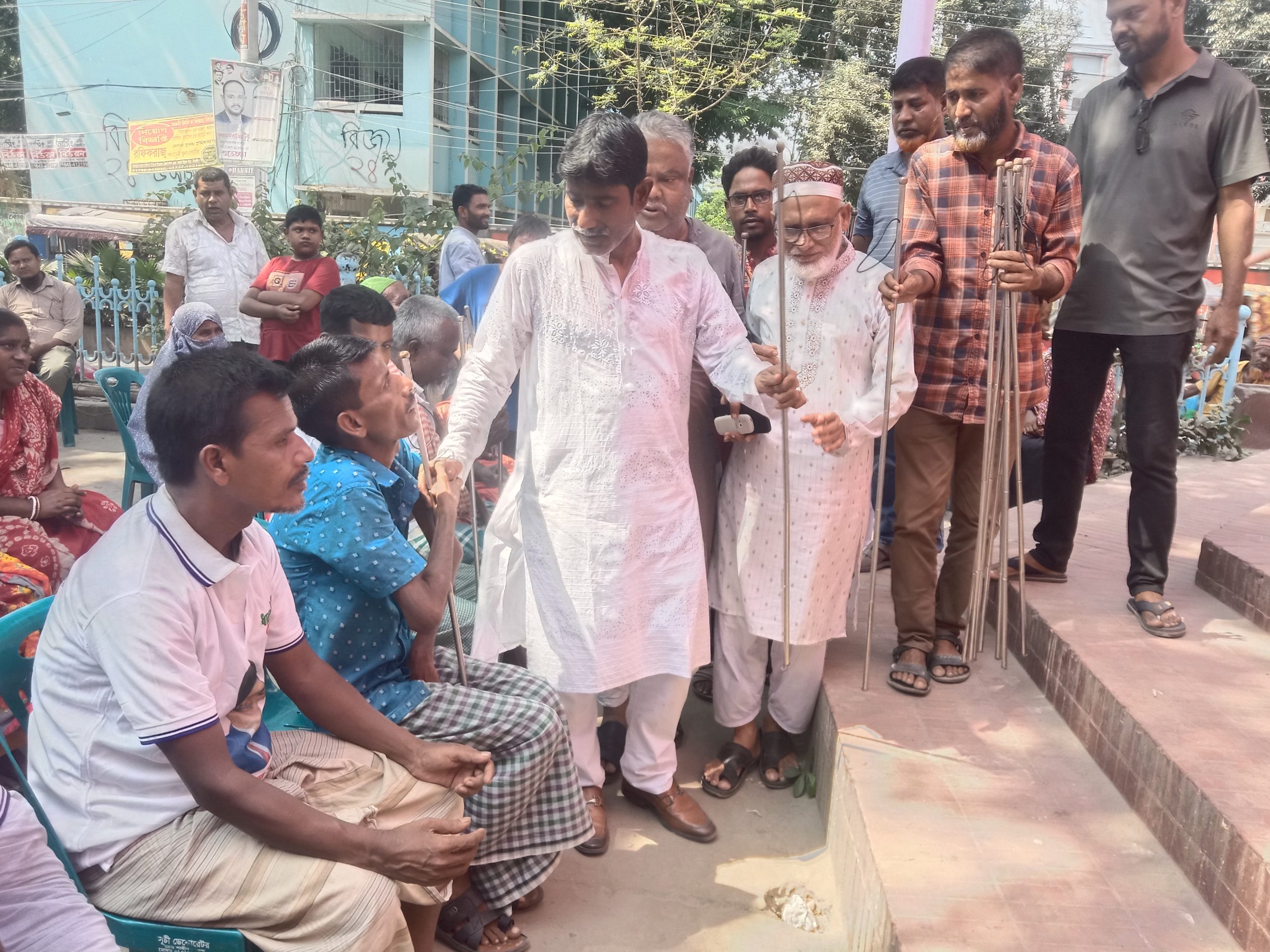 এ সময় দৃষ্টি প্রতিবন্ধী মাঝে সাদাছড়ি বিতরণ করা হয় ।